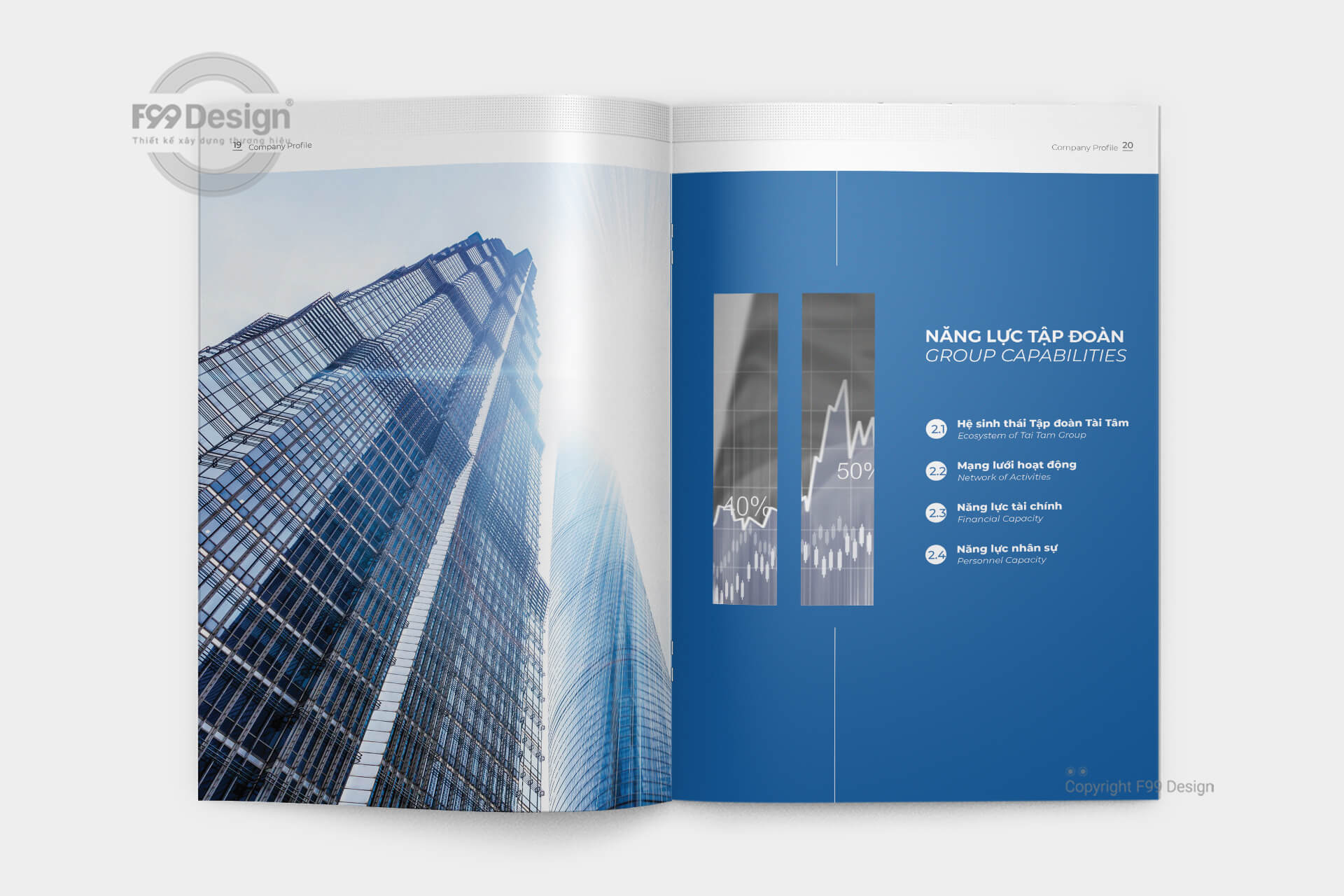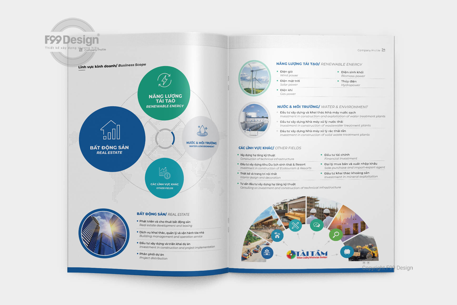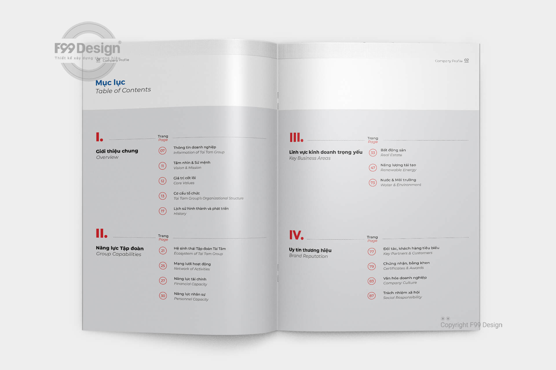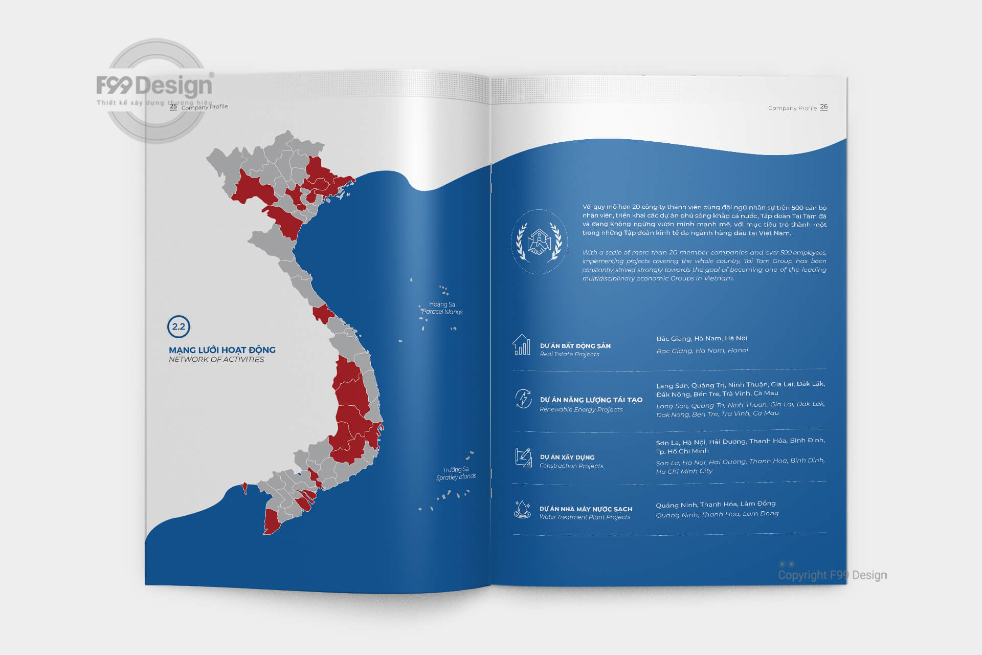 Với đội ngũ tư vấn thiết kế chuyên nghiệp nhiều năm kinh nghiệm về đấu thầu, dự thầu cho công ty, doanh nghiệp các công ty mới thành lập (công ty cổ phần, công ty TNHH…) dễ dàng gây ấn tượng thông qua cuốn Hồ sơ năng lực (Company Profile) một cách hiệu quả. Với kinh nghiệm hơn 6 năm hoạt động về xây dựng cuốn hồ sơ năng lực, khách hàng hoàn toàn yên tâm về chất lượng, giá rẻ, cũng như dịch vụ tại F99 Design. F99 Design cam kết mang tới khách hàng cuốn hồ sơ đầy đủ hồ sơ pháp lý, dịch vụ, mời thầu để gia tăng giá trị dự thầu cho nhà thầu một cách hiệu quả.