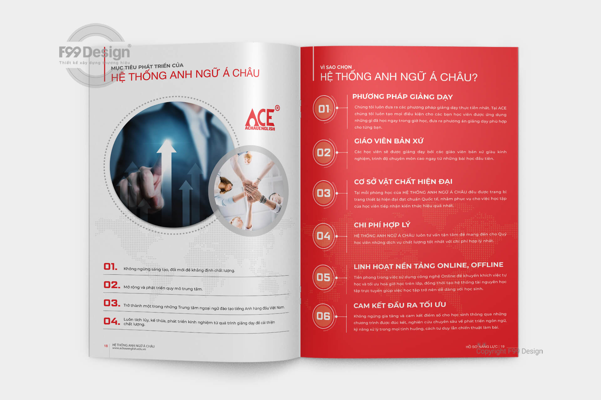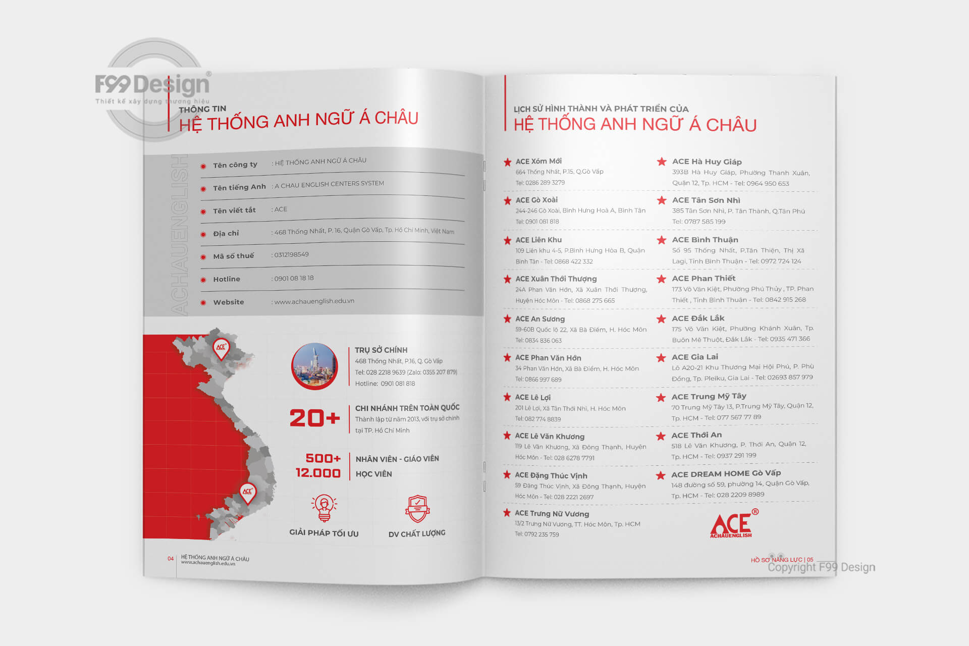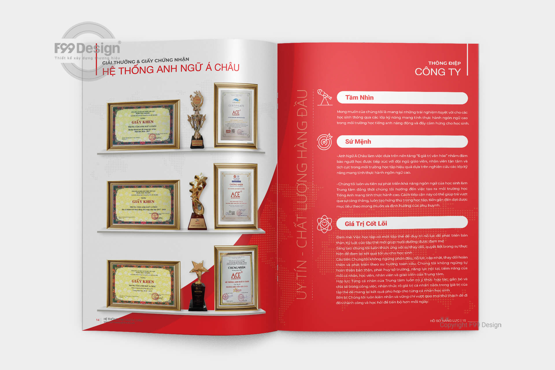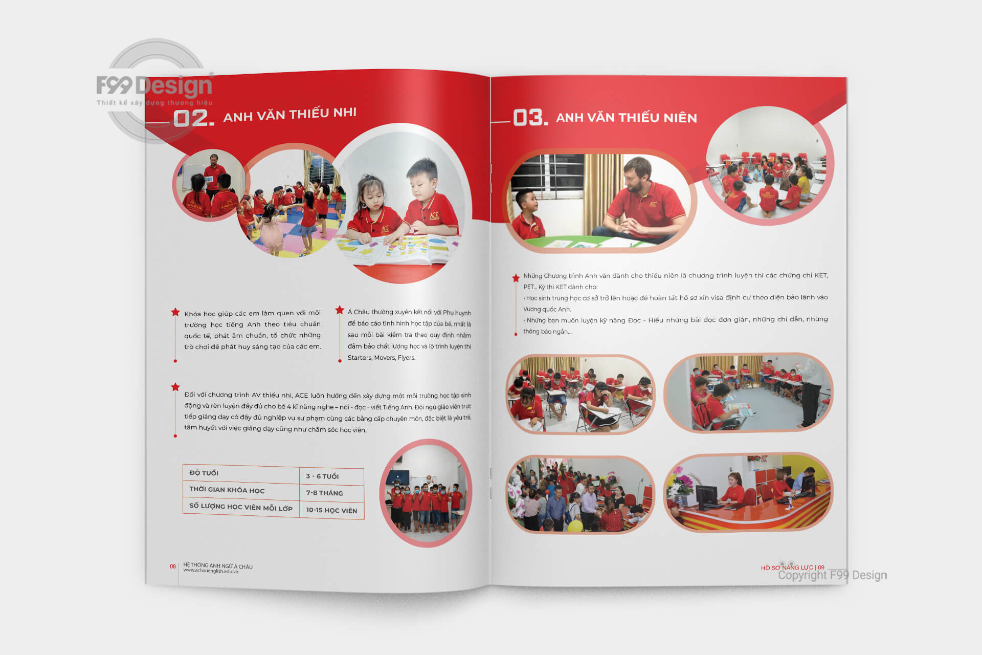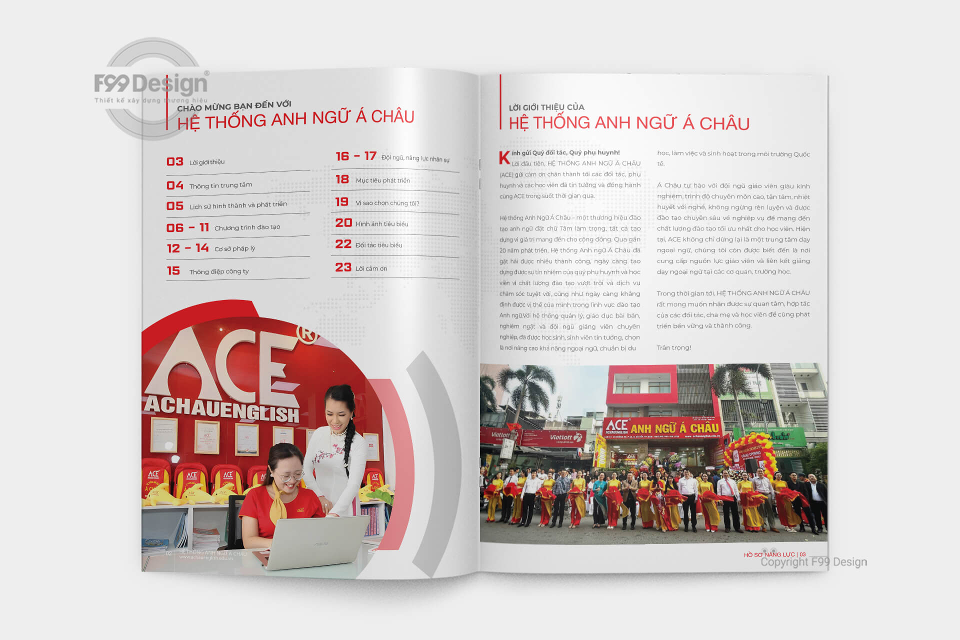 - Thiết kế profile Hệ thống Anh ngữ Á Âu: Là trung tâm đào tạo ngoại ngữ chất lượng cao, Á Châu chú trọng xây dựng môi trường học tập hiện đại, năng động, gắn kết giữa học viên, giáo viên và phụ huynh. Với đội ngũ giáo viên giỏi chuyên môn, tận tâm, giàu kinh nghiệm cùng chương trình đào tạo chuyên sâu, Hệ thống Anh ngữ Á Châu khẳng định vị thế là một trong những đơn vị uy tín hàng đầu trong lĩnh vực giảng dạy tiếng Anh tại Việt Nam.