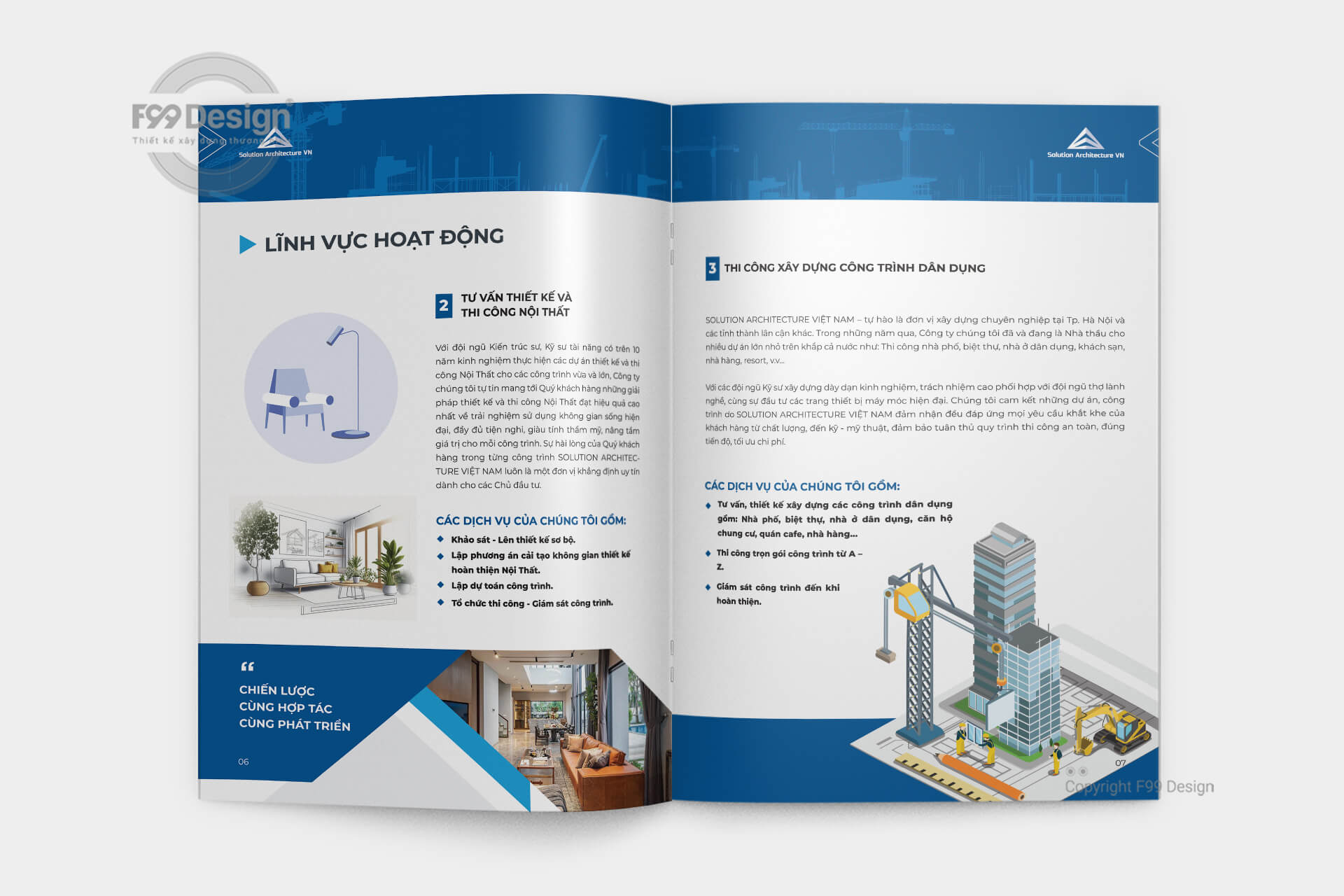 Tư vấn thiết kế hồ sơ năng lực chuyên nghiệp, giá rẻ, đẹp, độc đáo và ấn tượng tại F99 Design. Với những sản phẩm chất lượng nhất cho khách hàng, đáp ứng đúng và nhanh chóng yêu cầu của khách hàng. Với phương châm “KHÁC BIỆT CỦA CHÚNG TÔI – LỢI ÍCH DÀNH CHO BẠN” tại F99 Design chúng tôi cam kết hỗ trợ khách hàng tìm kiếm hình ảnh sản phẩm, dự án, hợp đồng, biên soạn nội dung theo yêu cầu, sắp xếp bố cục thiết kế ấn tượng, lập hồ sơ dự thầu, nhận làm bìa hồ sơ… Dịch vụ hỗ trợ khách hàng sau bàn giao, hỗ trợ trợ trực tuyến 24/7.