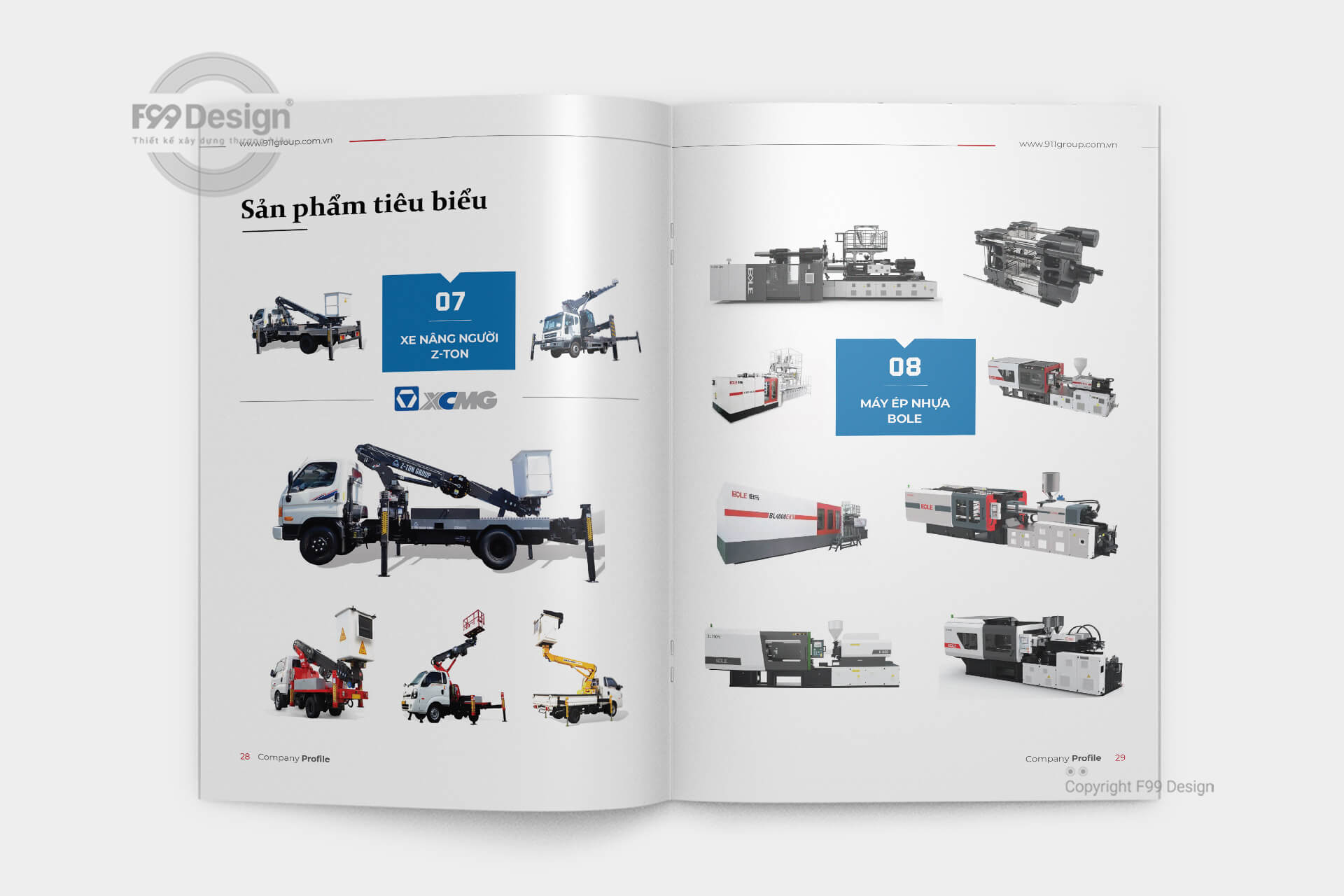 - Thiết kế profile Công ty Cổ phần Tập đoàn 911: Công ty Cổ phần Tập đoàn 911 là đơn vị hoạt động đa ngành, từ cung cấp máy xây dựng, khai thác mỏ cho đến thiết bị y tế. Với định hướng phát triển bền vững và không ngừng đổi mới, Tập đoàn 911 luôn chú trọng mở rộng quy mô, nâng cao chất lượng sản phẩm – dịch vụ nhằm đáp ứng nhu cầu ngày càng cao của khách hàng và đối tác trên toàn quốc.