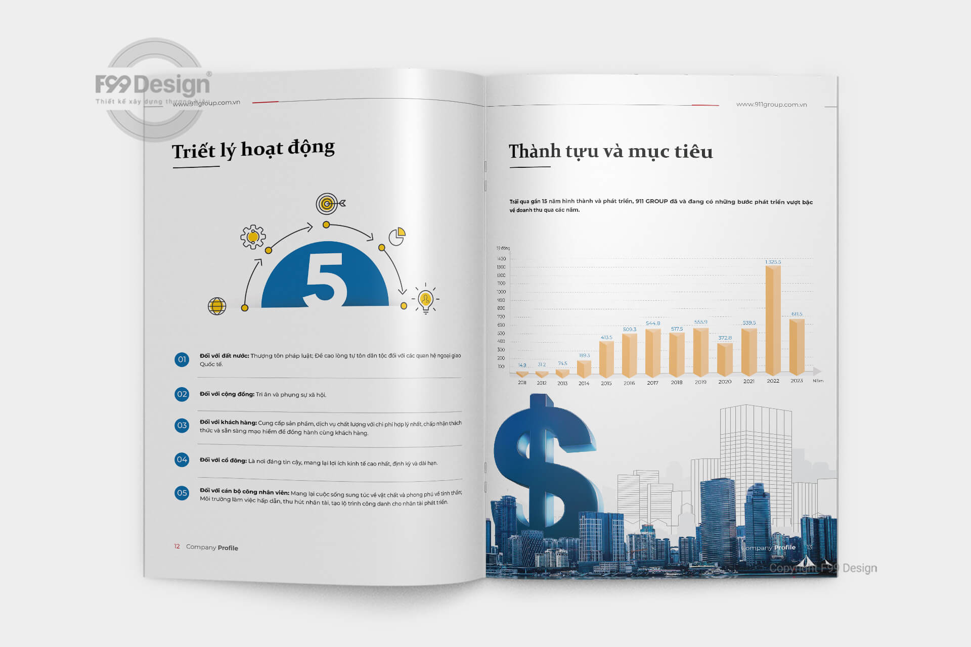 Thiết kế profile Công ty Cổ phần Tập đoàn 911 – Triết lý hoạt động – Thành tựu và mục tiêu